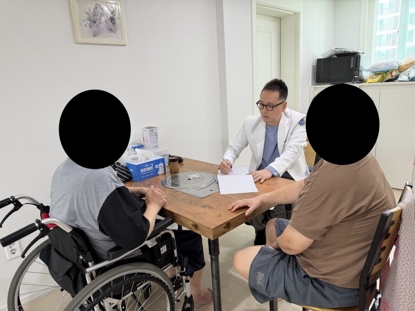▶ 방문재활 프로그램은 방문진료 - 사전평가 - 재활치료 2회기 - 사후평가로 진행되고 있으며 3월에는 광주광역시 광산구보건소 연계하여 실시하였습니다.